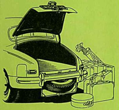 1 Large Luggage Space A large boot is provided at the rear of the car with an unobstructed floor, and is lined with rubber and felt. The spare wheel compartment is completely separate from the luggage. Note the neat flush fitting spring flap, covering the petrol filler cap. Locked from inside the boot, it foils pilferers. |