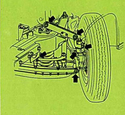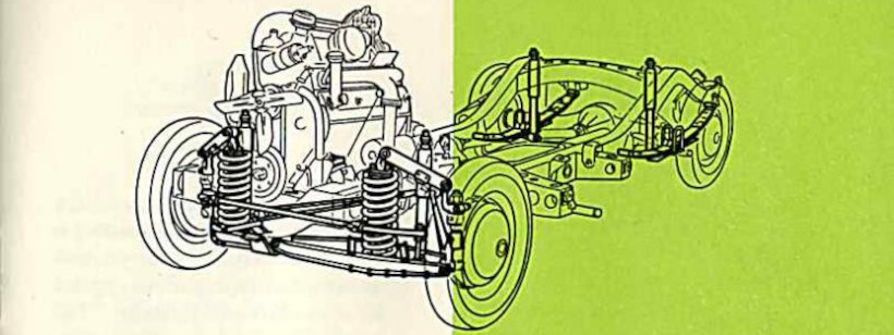 6 Co-Ordinated Suspension No rolling on corners and no front end dip when braking. Shocks imparted by the roughest road surfaces are completely absorbed due to the generous amount of vertical wheel movement and the fitting of the latest and most efficient type of telescopic shock absorbers. Rubber bushes are fitted to all suspension link joints, eliminating noise and the need for external greasing. | |